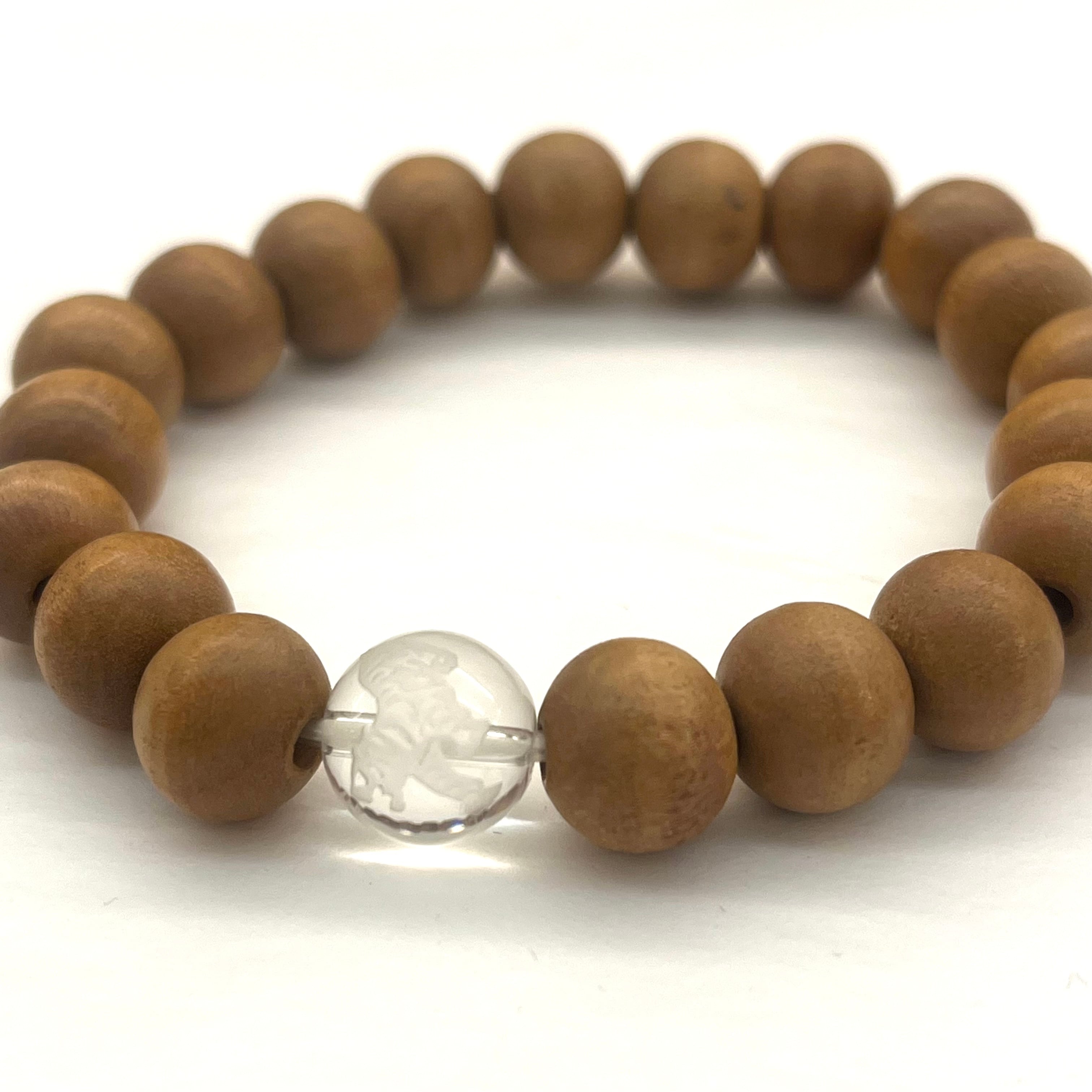 インド香木老山白檀 白虎彫刻水晶ブレスレット