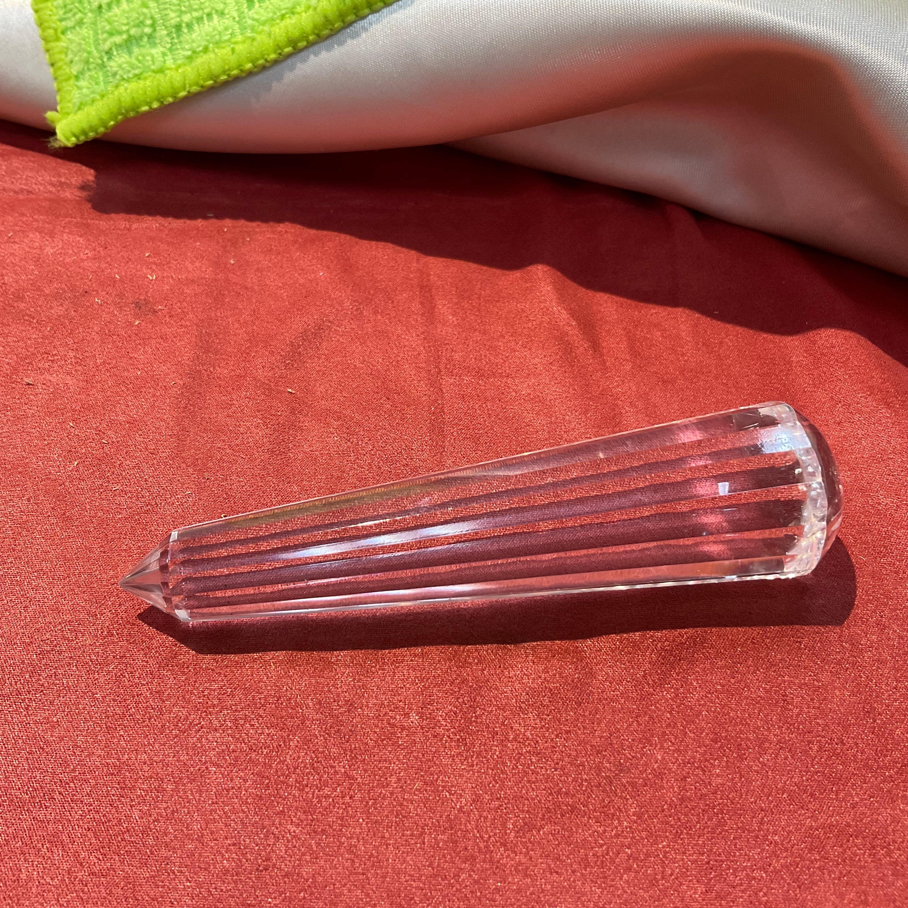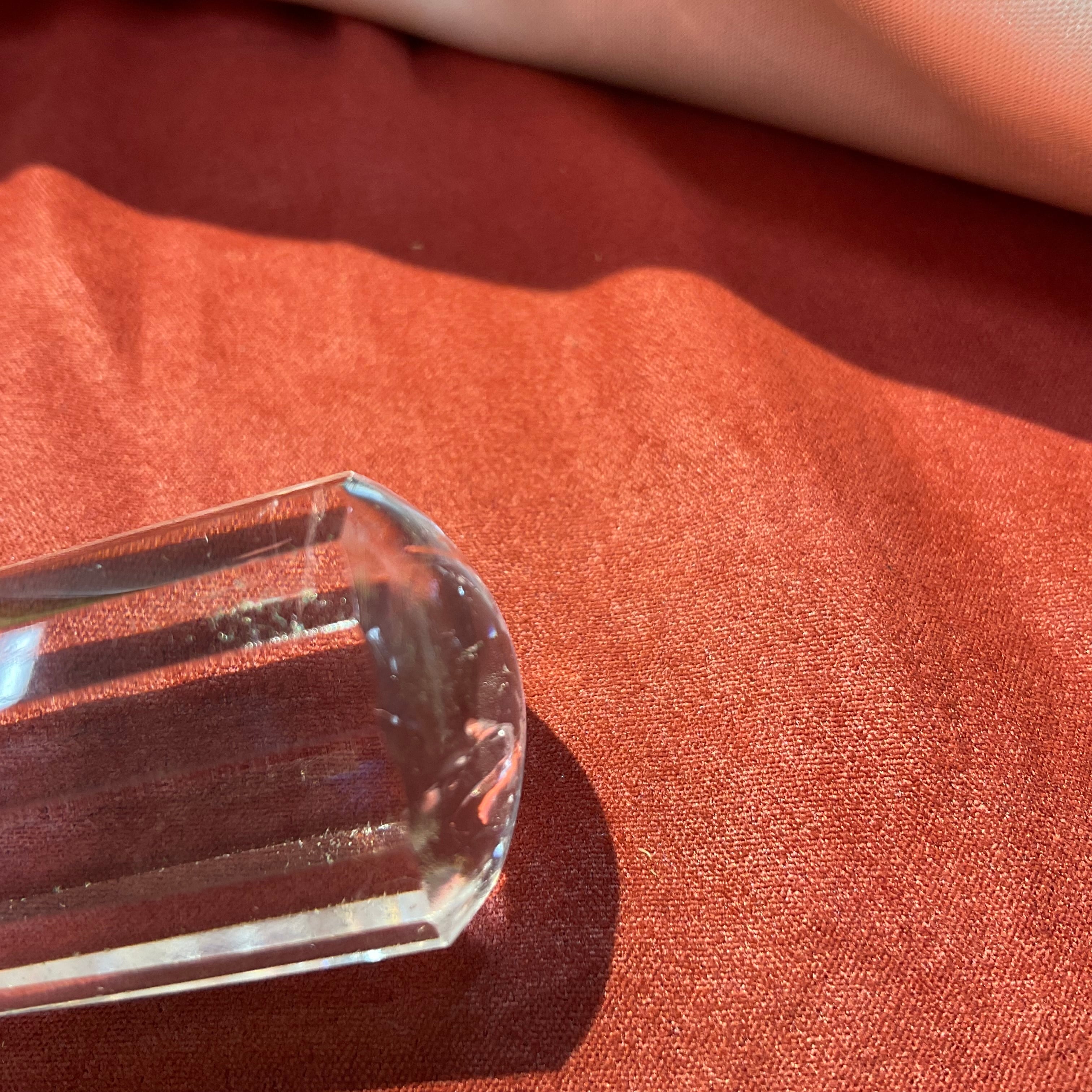 本品は約15年前に買い付けた水晶で、現在流通している量産的な水晶とは異なり、素材の質とカットの丁寧さが感じられる一点ものです。鉱物標本としてはもちろん、インテリアオブジェとしてもすてきです。