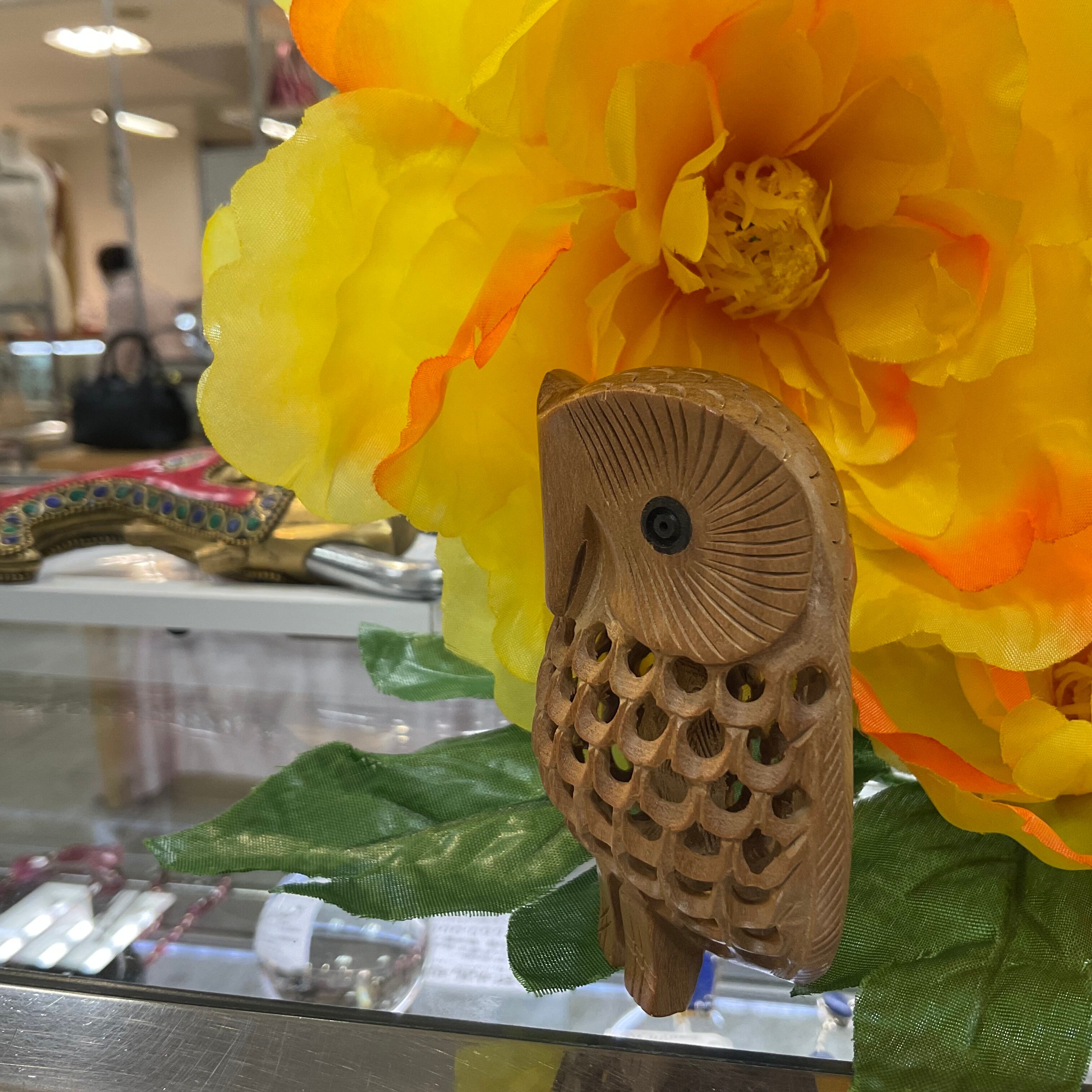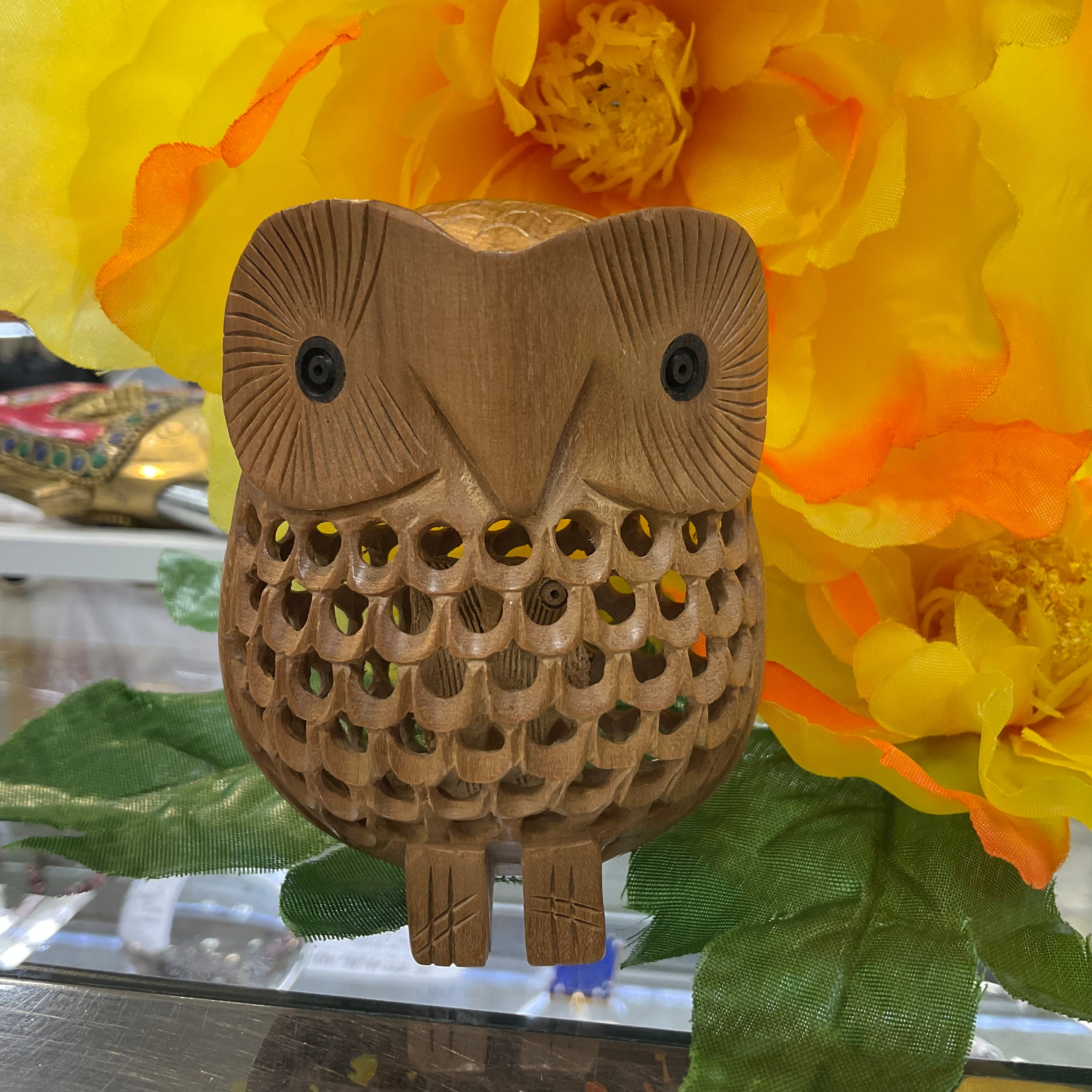 インドマイスール産老山白檀の透し彫りフクロウ
