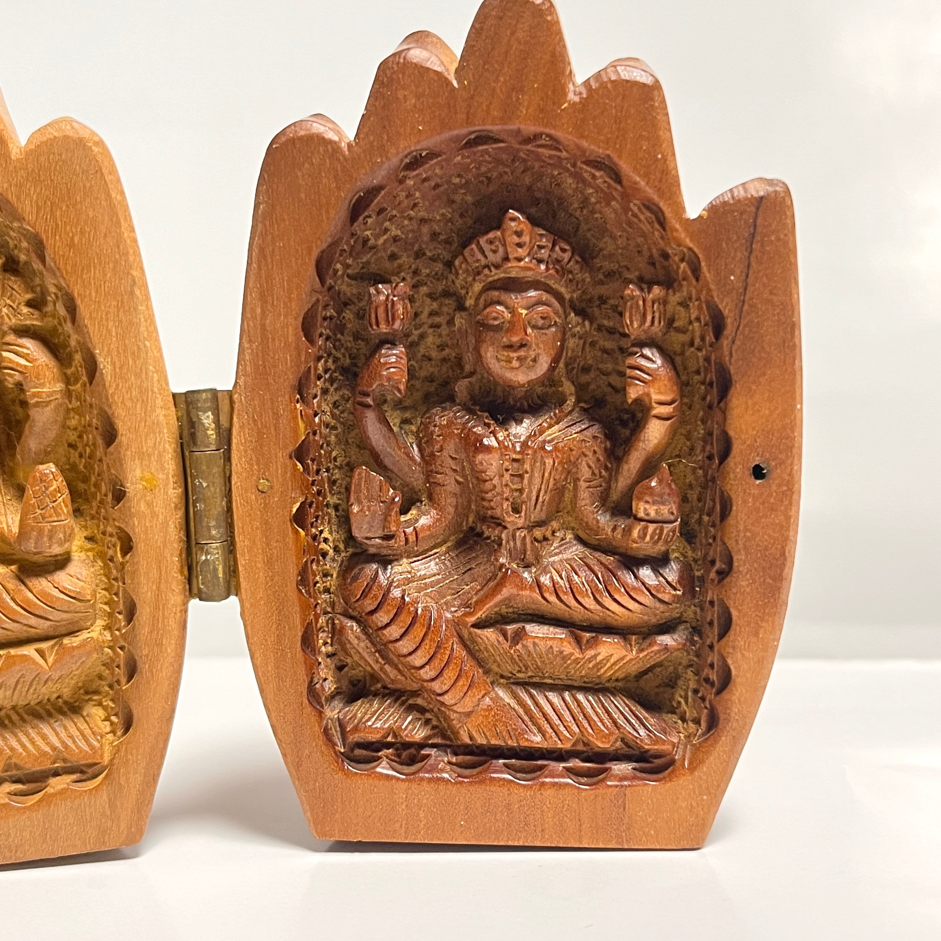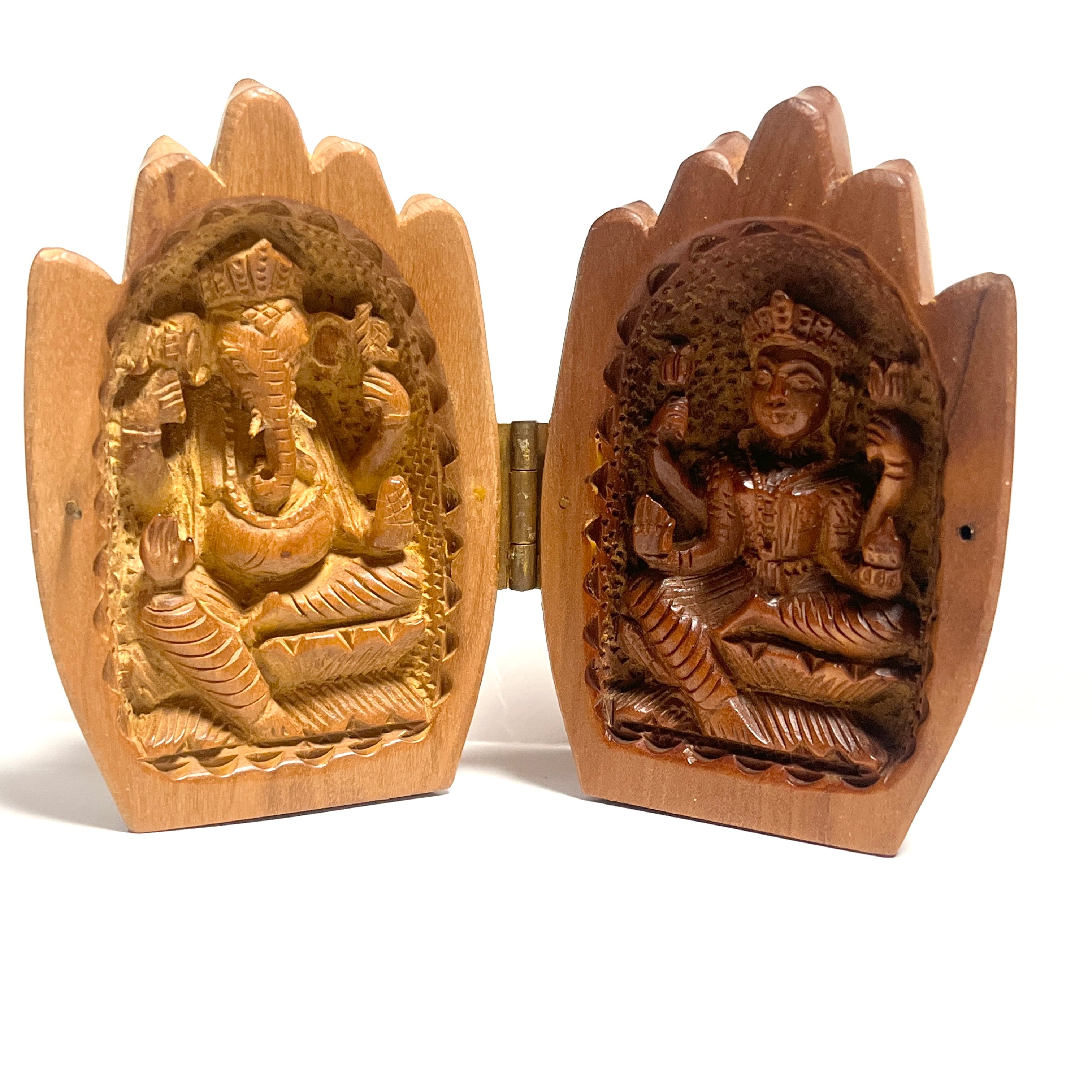 インド香木老山白檀 老山白檀 両開き小祠合掌(ガネーシャ&ラクシュミー)