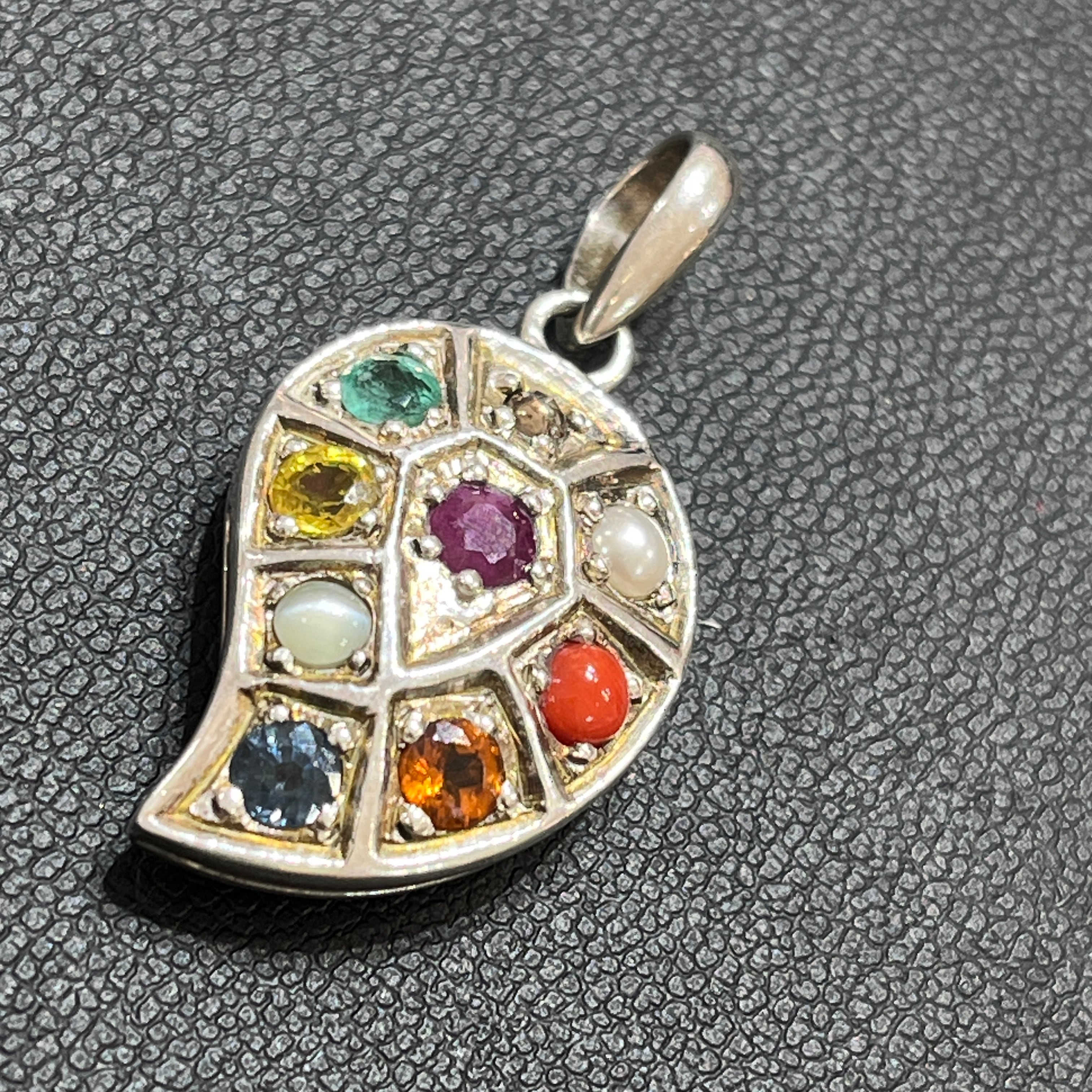 繁栄を表すマンゴーのデザインのナヴラタン。石も大きくパワーがありそうです。